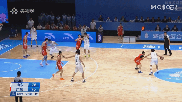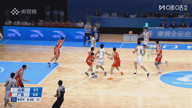 次節(jié),山東隊方面張博源增加了個人的沖擊,廣東在第二節(jié)上來還是依靠米少杰和夏振峰兩人在外線的沖擊力和投射去保證進攻火力。替換上來的藍逸朗先是中側(cè)步中距離,然后又底線發(fā)炮命中,成為本節(jié)奇兵。